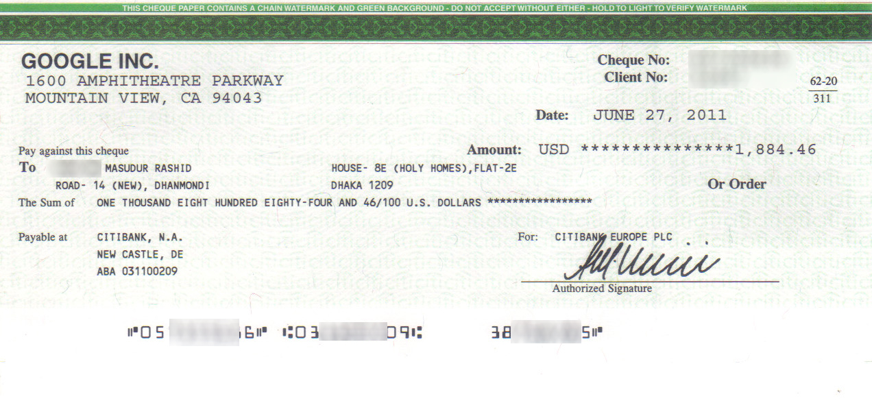 Andsense Cheque 04.2011
