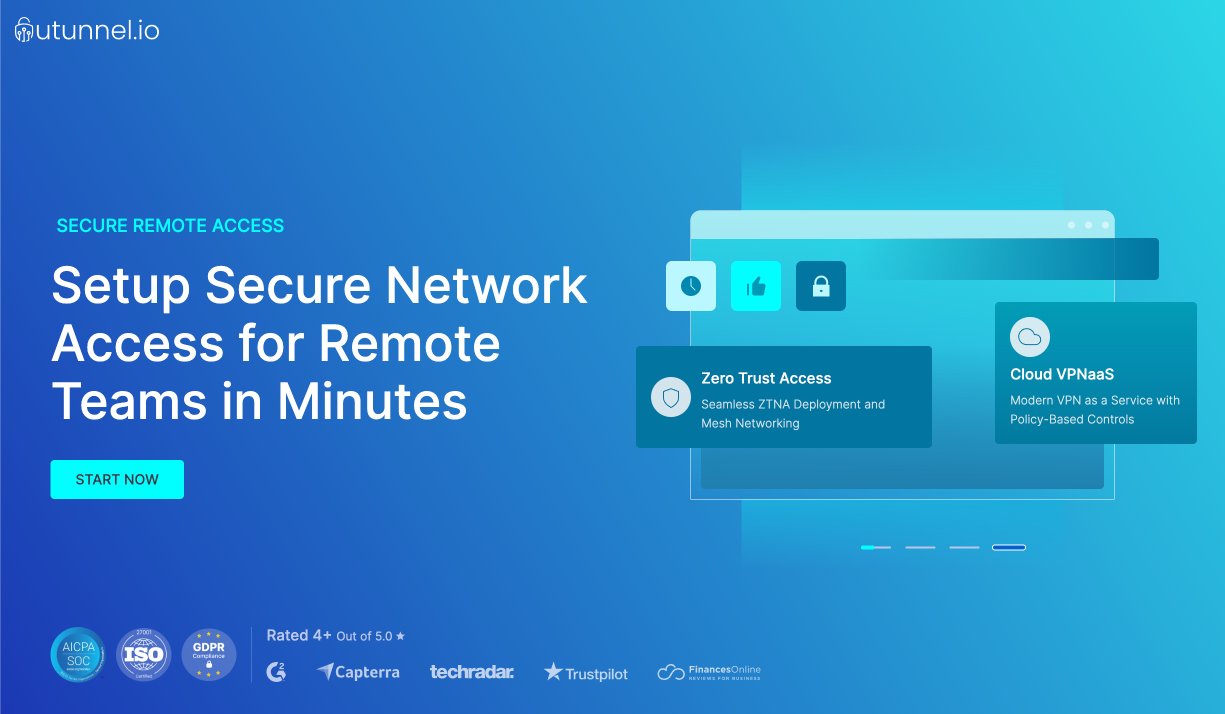 Businesses today rely heavily on remote work. Therefore, companies need secure access to internal resources without complicated hardware setups. UTunnel solves this problem through a simple cloud management system.